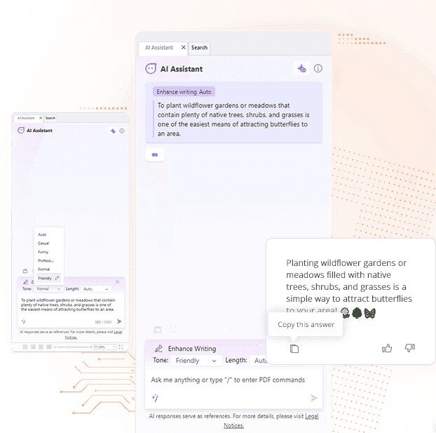 Speak naturally and ask questions. Foxit’s AI chat provides in-depth answers, empowering you to make more informed decisions about your documents.