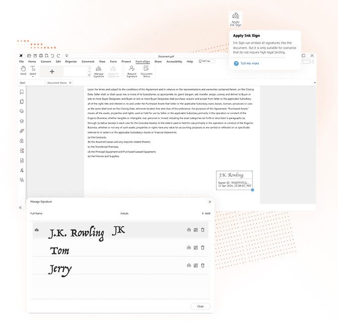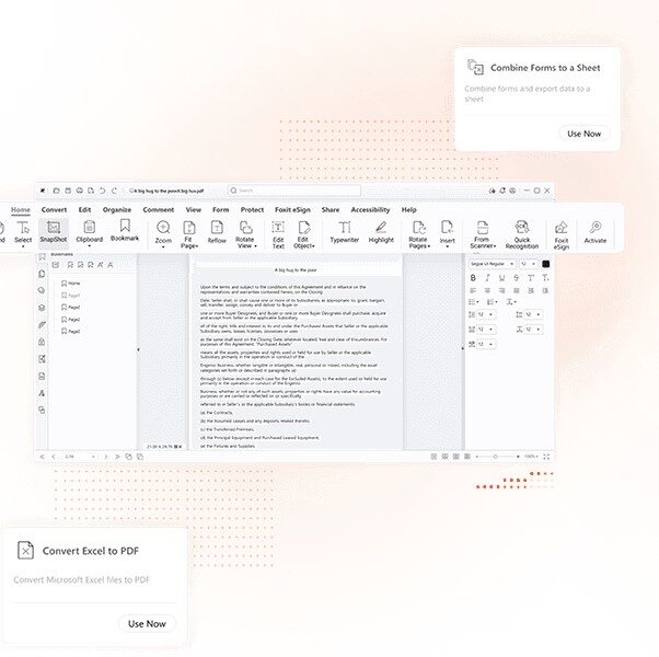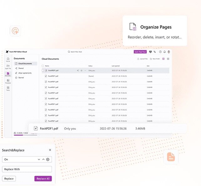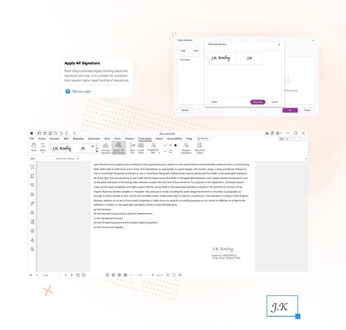 Legally binding eSign capabilities integrated into the powerful and robust Foxit PDF Editor enable you to seamlessly create, eSign, and collaborate on documents within and outside the organization from within the same application.