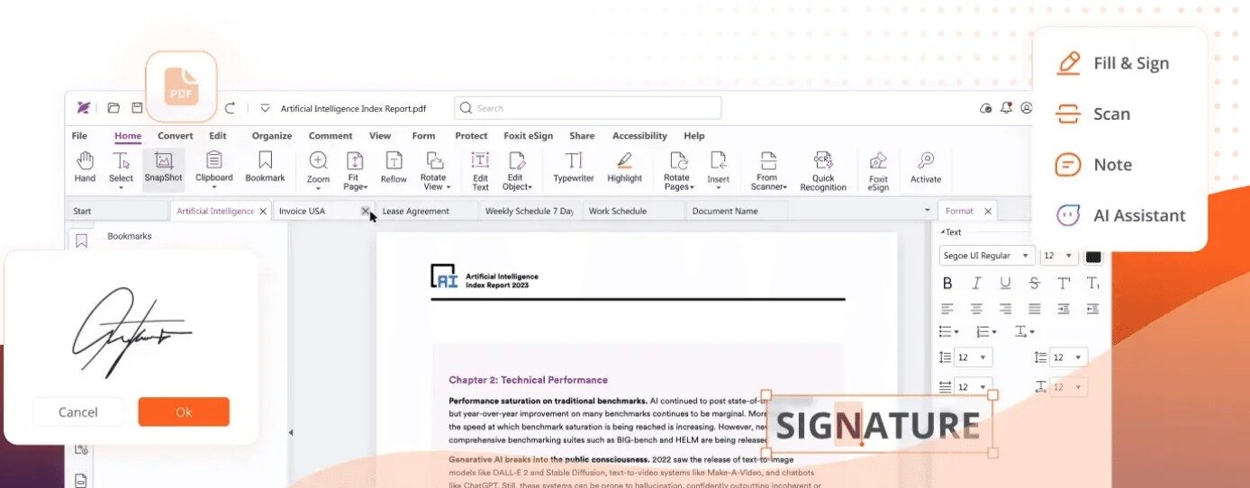 Legally binding eSign capabilities integrated into the powerful and robust Foxit PDF Editor enable you to seamlessly create, eSign, and collaborate on documents within and outside the organization from within the same application.